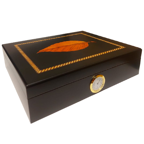 Caixa umidora para charutos, feita de madeira com excelente vedação, ideal para armazenar adequadamente 12 a 20 charutos aproximadamente.