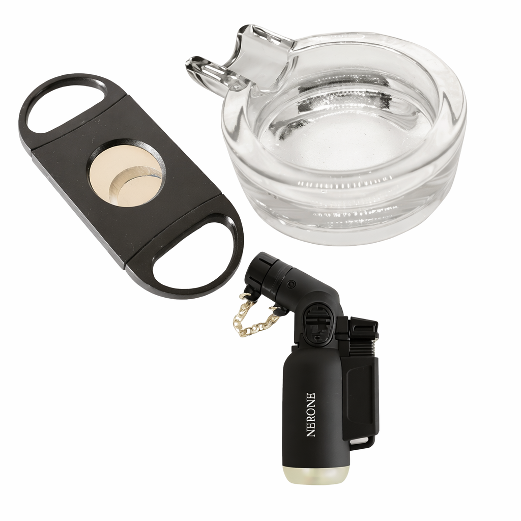 O Kit de Acessórios para inicantes é composto por 3 peças básicas que um iniciante precisa para dar início a aprecição de charutos.